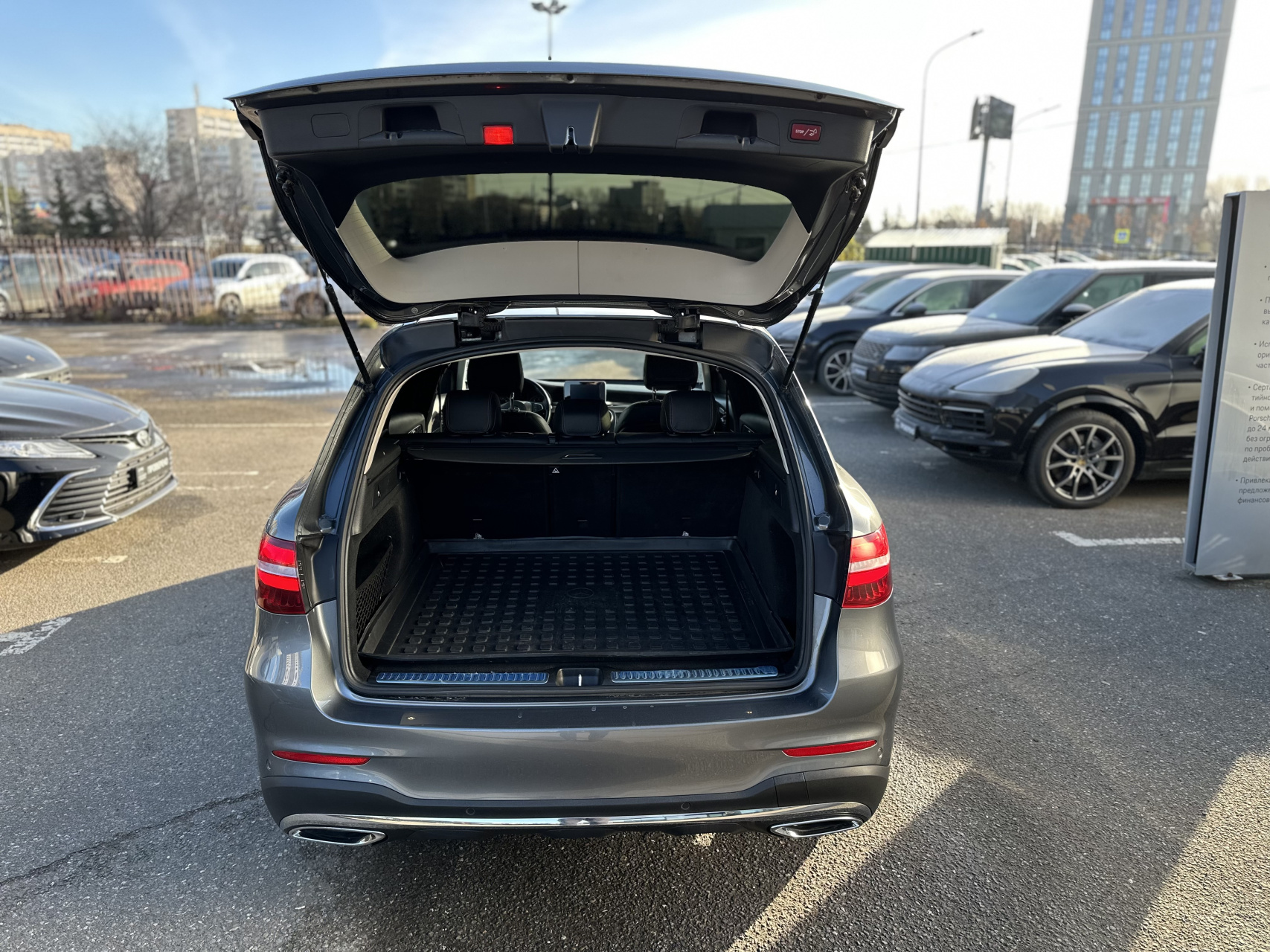 Mercedes-Benz GLC 250 — это изысканный внедорожник, сочетающий в себе спортивный характер и элегантный дизайн с комфортом премиум-класса. Он привлекает внимание «алмазной» решеткой радиатора, плавными линиями силуэта и современными LED-фарами, создающими уверенный и респектабельный вид. Внутри автомобиль предлагает роскошный комфорт и передовые технологии, обеспечивая при этом высокую безопасность и управляемость, а также вместительный багажник.