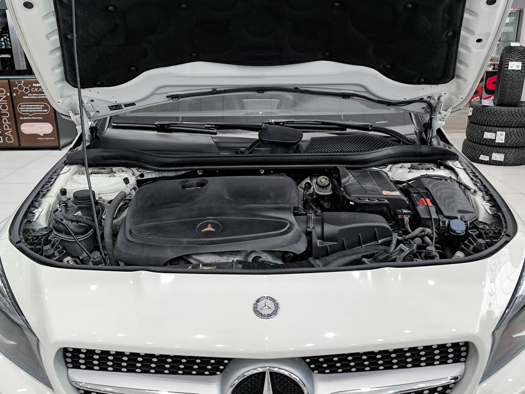 Mercedes-Benz CLA Цвет — белый.Внутри — комбинированная кожа, передний подлокотник, складывающаяся спинка пассажира, третий подголовник и накладки на пороги. Оснащён бортовым компьютером, аудиосистемой с AUX, кондиционером, подогревом сидений, электростеклоподъёмниками, регулировкой руля, круиз-контролем, датчиком давления в шинах, системой безопасности — ABS, ESP, подушками и креплениями для детских сидений. Фары ксеноновые с омывателем и датчиком света, диски 17 дюймов, электрозеркала, иммобилайзер дополнительно повышают комфорт и безопасность. Надёжный, практичный и элегантный автомобиль для городских поездок и дальних путешествий.