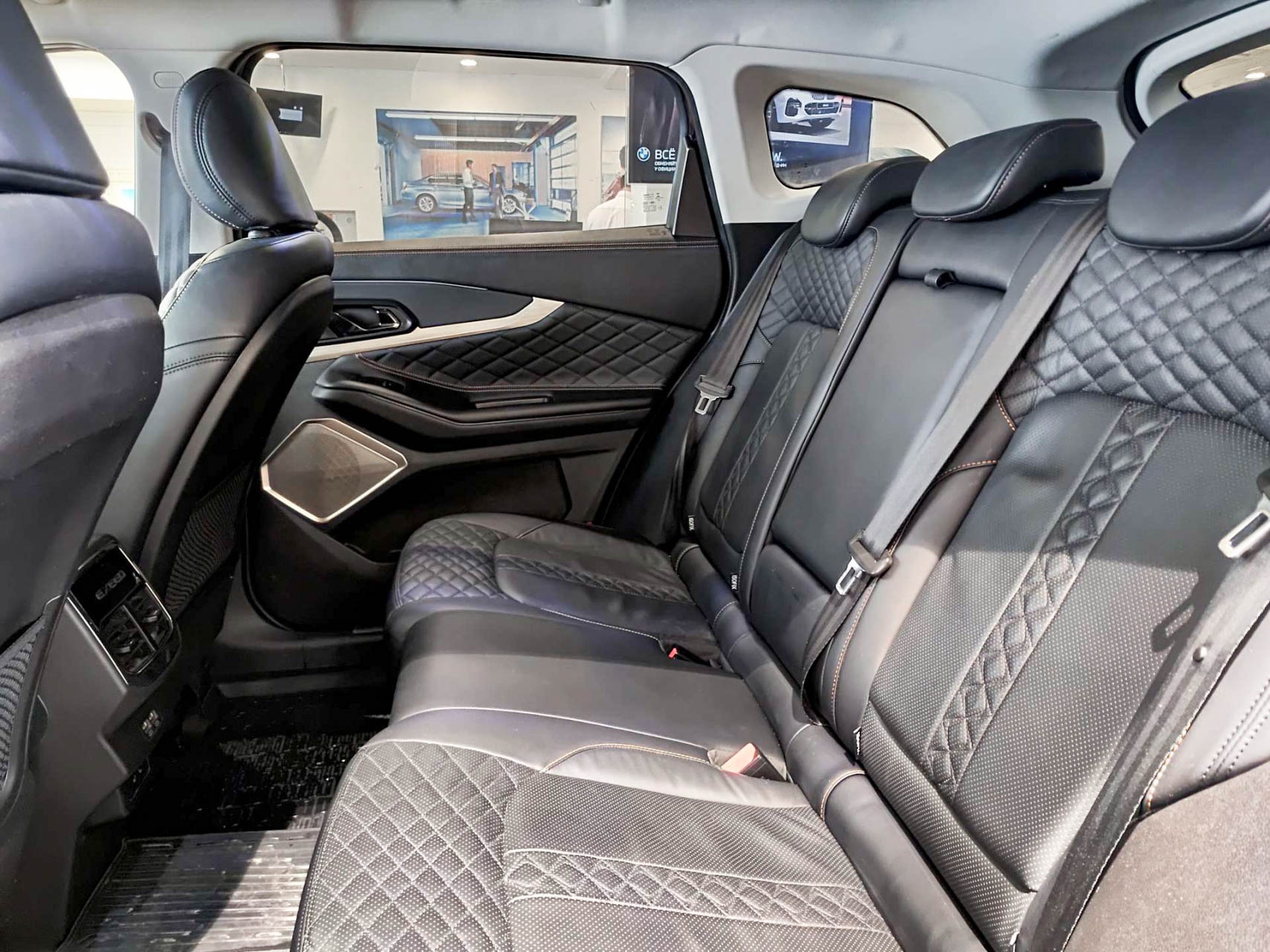 На втором ряду просторно, спинка регулируется по углу наклона. У пассажиров есть собственный климатический блок, с которого регулируются воздушные потоки, а также включается обогрев и вентиляция сидений.